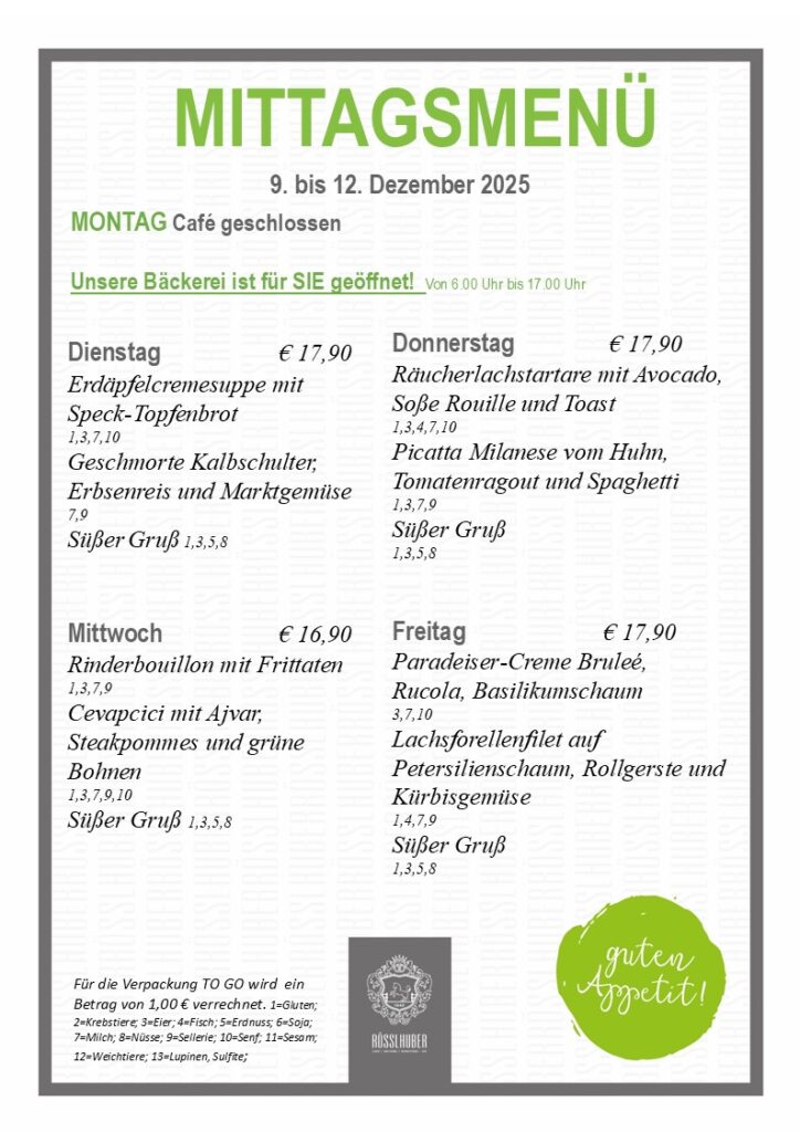 Mittagsmenü vom 9. bis 12. Dezember 2025